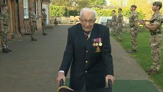 这段总长1.6英里(2.5公里)的路程让汤姆老人的故事传遍全球,他的善良和坚韧触动人心,人们从144个国家和地区向他提供了89万笔捐款。