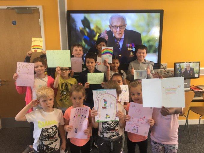 他也引发了一股社交媒体上跨越几代人的狂热,艺术家们竞相创作庆祝他成就的插画,孩子们则为他即将到来的100岁生日制作卡片。