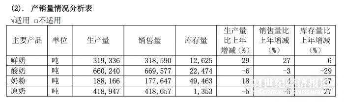 分行业看,乳制品制造业实现营业收入200.88亿元,同比增加12.36%,主要原因是液态奶营业收入同比增加11.03%,其他乳制品营业收入同比增加15.39%;营业成本为134.84亿元,同比增加19.13%,主要原因是收入上升带动成本上升;毛利率为 32.88%,同比减少 3.81个百分点。牧业实现营业收入16.69亿元,同比减少29.93%,营业成本为14.64亿元,同比减少31.62%;毛利率为12.30%,同比增加2.16个百分点。