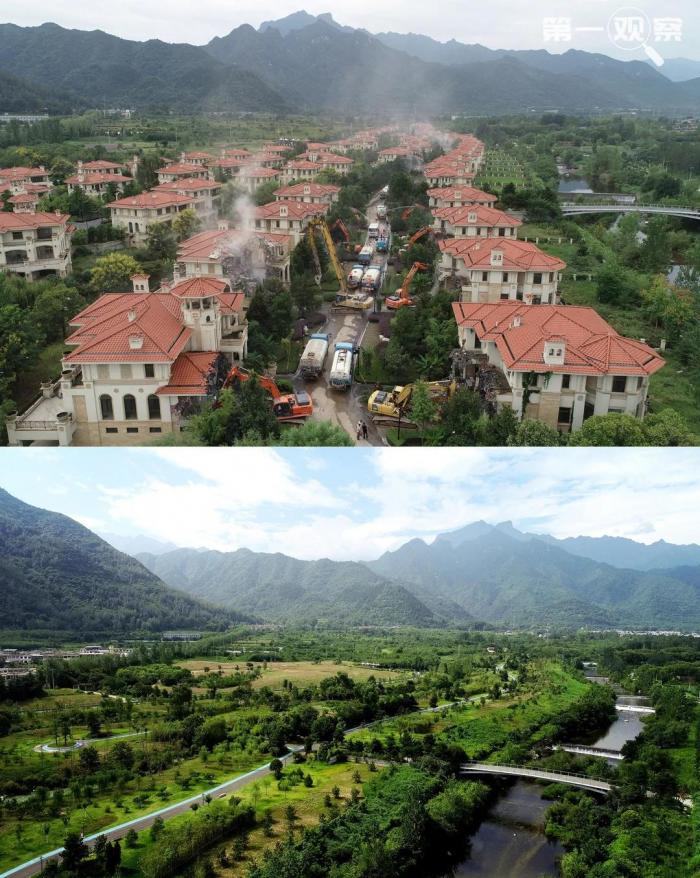 然而,曾几何时,秦岭的自然生态,因违建别墅问题而遭受破坏。一些人以所谓“文化旅游项目”的名义,在秦岭北麓违法违规搞房地产开发,修建商品房和别墅,将“国家公园”变为“私家花园”。而且,违建问题在一段时间竟禁而不绝、整而未改。