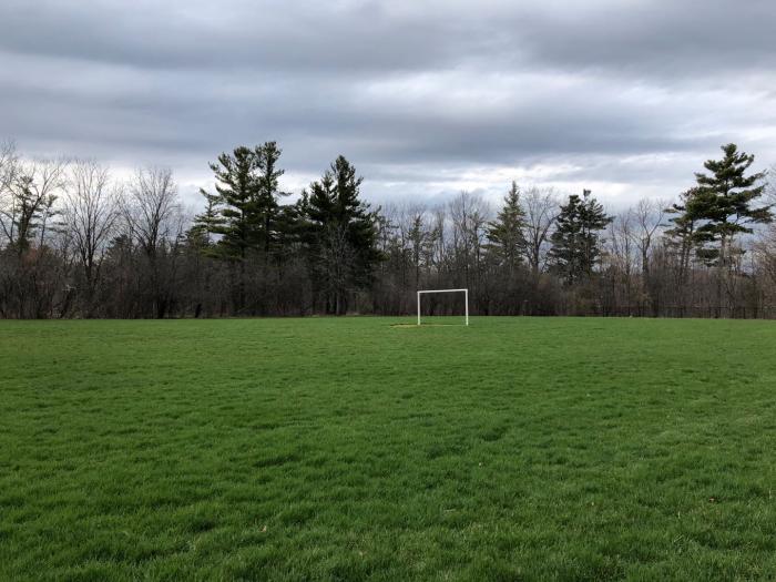 春天来了,绿草如茵,但球场还是空荡荡。 董黎明/摄
