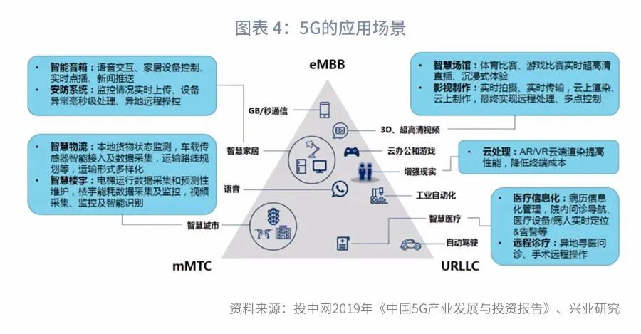 第一,新基建有广阔的应用场景和较大的市场潜力。民间资本对于新基建有着更强的参与动力,可以通过更少的政府资金来撬动更大规模的民间投资。以5G为例,5G网络有着高速率、低时延和泛连接的特点,包括三个方面的应用场景: