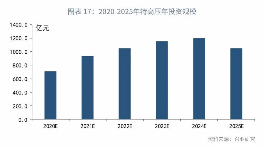 从国家电网公布的安排看,2020年国家电网除安排2018年国家能源局发布的《关于加快推进一批输变电重点工程规划建设工作的通知》中公布的线路外,还新增了三条线路的前期可行性研究工作。若进展顺利,这三条线路有望在2021年进行核准建设。我们预计随着用电量的增长,以及政策支持力度增强,特高压后续有望实现温和增长。具体投资规模测算如下: