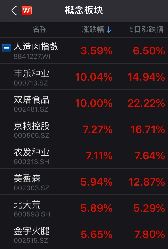 Beyond Meat宣布进军中国市场后,4月22日,A股人造肉概念板块集体大涨。截至上午收盘,丰乐种业、双塔食品、大北农涨停。