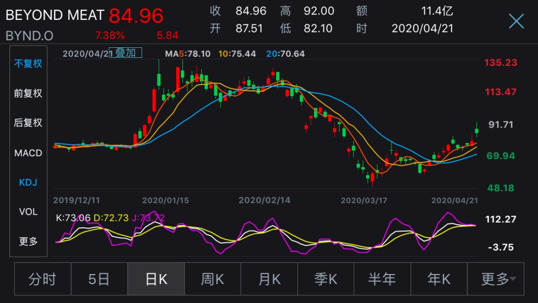 21日收盘,Beyond Meat股价大涨7.38%,盘中最大涨幅达到16%。