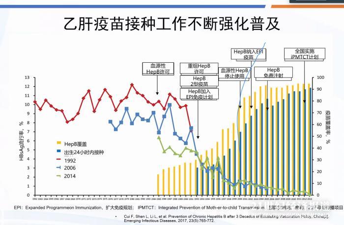 WHO提出“2030年消除慢性乙型肝炎”的目标,而乙肝疫苗的普及,将是达到这个目标的重要手段。2018年数据显示,在1-29岁人群中,乙肝感染率只有2.64%,5岁以下儿童当中是0.32%。上海交通大学医学院附属第九人民医院感染科主任医师许洁说,“现阶段,我国免疫策略是保持新生儿优先接种乙肝疫苗,同时在儿童当中进行查漏补种,并且把目光放到了成年人身上。考虑到我们国家慢性乙肝的流行率实际上仍然比较高,提升公众对于成人免疫的正确认知十分必要。”
