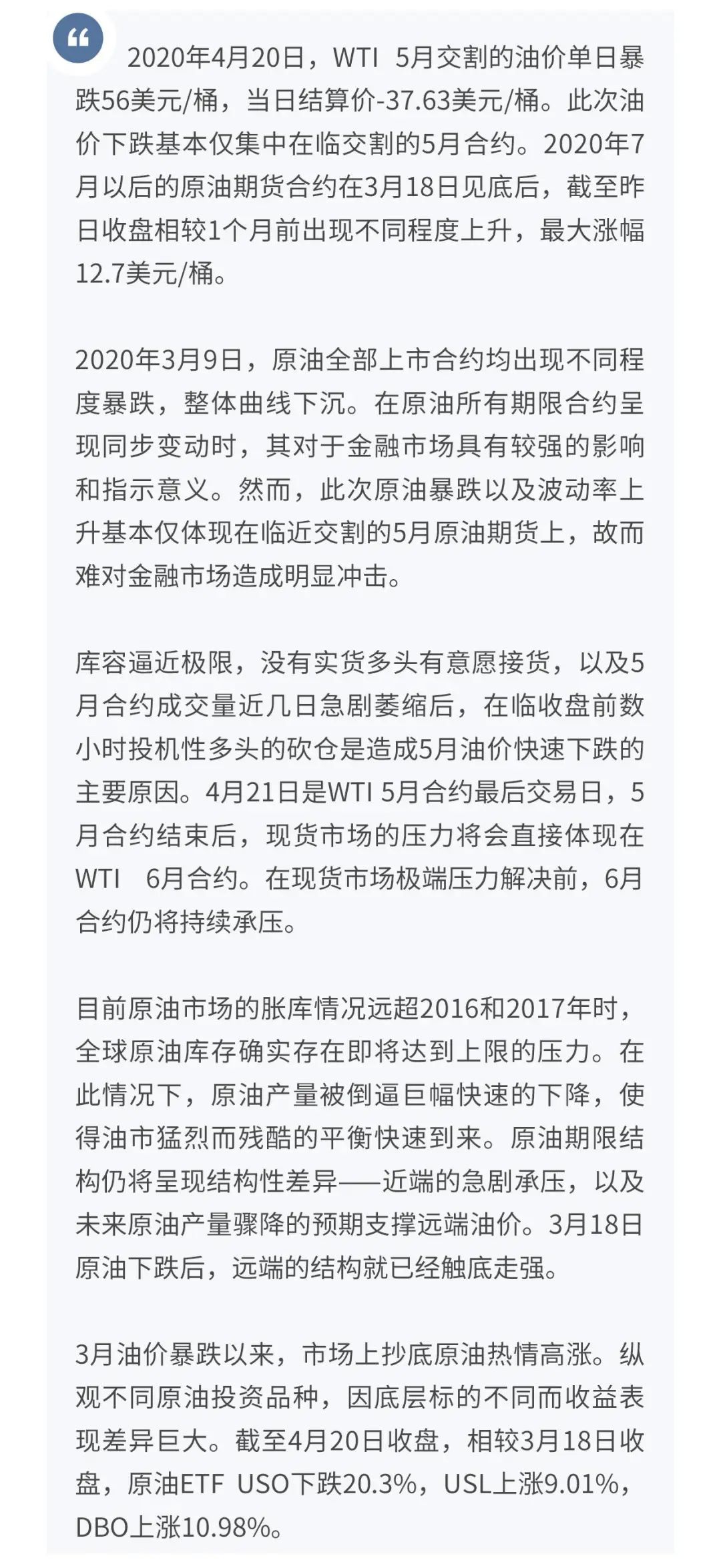 通常而言,在期货市场,逼仓大戏上演后,供需面往往会自发出现猛烈而残酷的平衡调节。所以目前我们认为短期WTI6月油价仍因为库存上限问题遭受极端承压,但油市猛烈而残酷的平衡到来的速度或会快于人们的预期。
