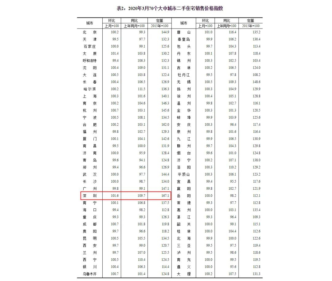 根据国家统计局的数据,3月,深圳二手住宅销售价格涨幅领跑全国,环比上涨1.6%,对比之下,北京和上海分别上涨0.2%、0.3%,广州下降0.2%。而在新房方面,深圳的销售价格环比增长0.5%,涨幅居全国第六,北京持平、上海上涨0.1%、广州下降0.5%。