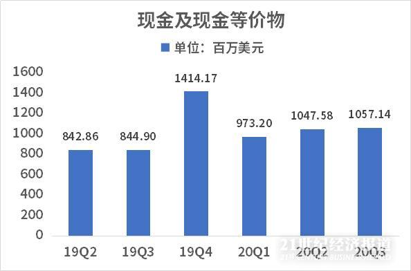 上图是公司财报显示的现金及现金等价物金额,从中可以看到,公司账上囤积了10.57亿美元的充裕现金,后续扩张的动力依然强劲。