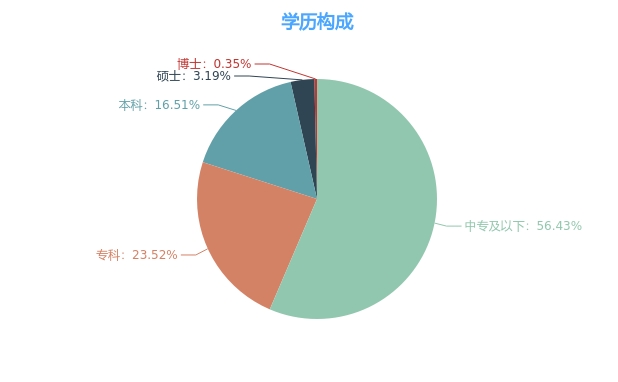 截至2019年12月31日,公司员工总人数为3762人,员工架构如下: