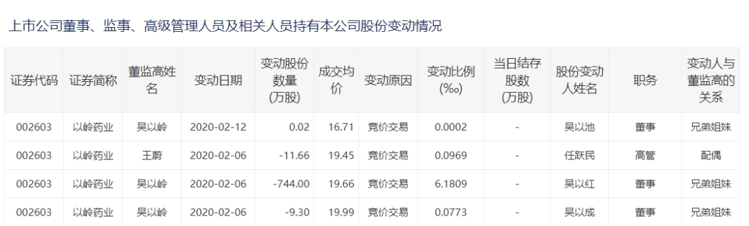 大股东提前减持,疯狂套现。深交所数据显示,2月,吴以岭的亲属吴以红减持744万股,套现1.46亿元。同时,吴以岭的其他兄弟姐妹吴以成、吴以池分别减持9.3万股、0.02万股,套现186万元、3.3万元。