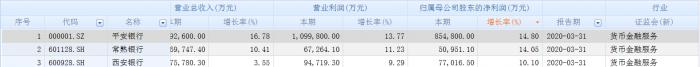 其中平安银行表现最为亮眼,一季度该行实现营业收入379.26亿元,同比增长16.8%,净利润85.48亿元,同比增长14.8%。此外,常熟银行和西安银行的净利润分别增长14.05%和10.10%。