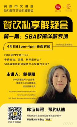 第一期讲座吸引了超过200人参加,主题是:美国联邦小企业署(SBA)有哪些政策将帮助中小型餐饮企业?第二期则进一步延续政策主题,找来银行专员聊不同银行的贷款政策。