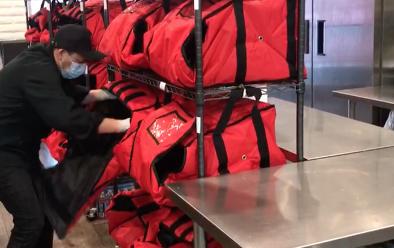 (盐语工作人员在后厨处理保温袋,保证取餐时的温度。由盐语提供)
