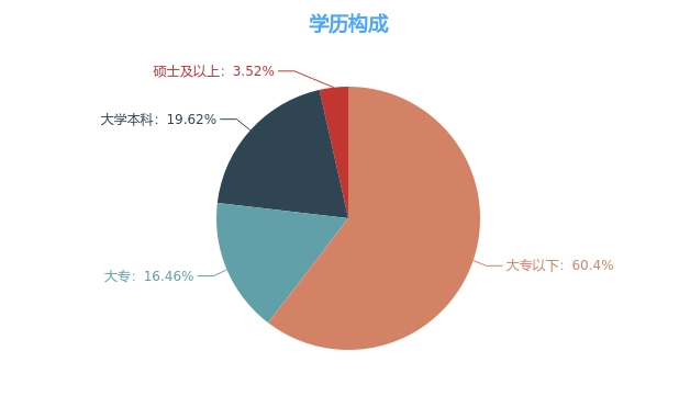 截至2019年12月31日,公司员工总人数为7325人,员工架构如下: