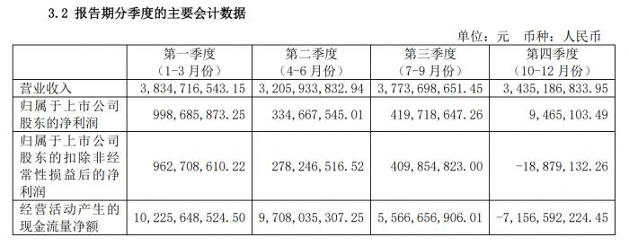 分季度来看,2019年Q1-Q4兴业证券分别实现扣非后净利润9.63亿元、2.78亿元、4.10亿元、-1888万元。2019年Q4,上市公司经营活动产生的现金流量净额为-71.57亿。