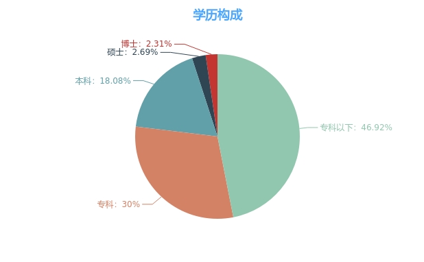 截至2019年12月31日,公司员工总人数为260人,员工架构如下: