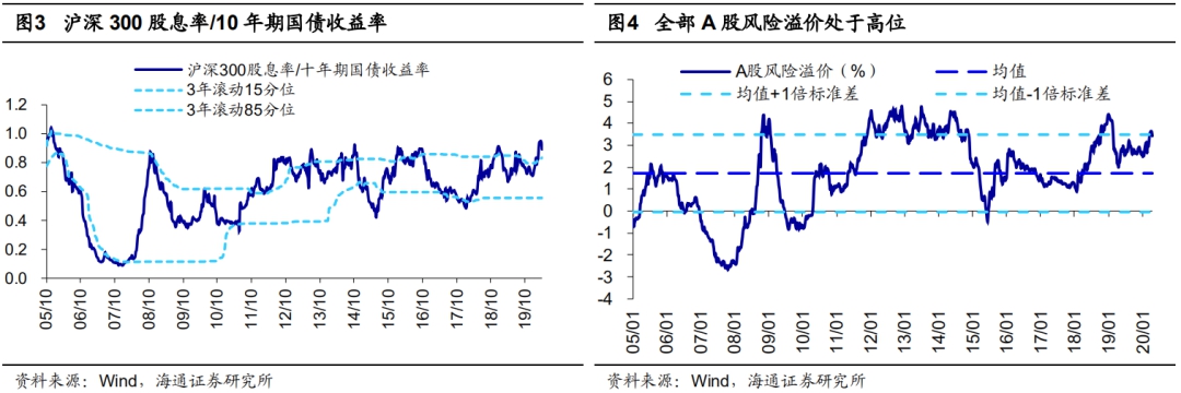 虽然今年一季度受疫情影响,A股出现较大范围的调整,但从年度视角看,市场振幅仍有扩宽空间,那么扩宽的方向更可能向下还是向上?我们认为向下空间有限,3月下旬以来我们一直强调3月份低点是这次调整的底部区域,即这轮牛市2浪调整的底部区域。3月19日上证综指2646点是担忧金融危机的恐慌底,当时全部A股PB(LF,整体法)低至1.56倍(目前为1.60倍),历史上熊市最低点的PB最低1.43-1.5倍。大类资产比较角度,2646点时风险溢价率(1/全部A股PE-10年国债收益率)处于05年以来从低到高80%分位(目前为78%),股债收益比(沪深300股息率/10年国债收益率)为100%分位(目前为94%),显示股市大幅优于债市。