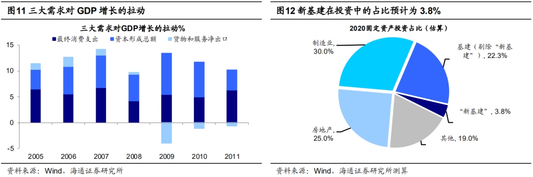 行稳致远,先聚焦内需。目前海外疫情形势严峻,对我国外需的影响是必然的。参考08年金融危机大跌后,09年数据显示缺失的外需只能由内需来补,当年货物和服务净出口对GDP增长的拉动为-4个百分点,而投资为8个百分点,消费为5.4个百分点。4月17日中共中央政治局会议召开显示国内政策将继续加码内需方向,重点是新基建和消费。