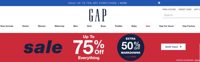 目前在Gap的美国官网上,所有商品(Everything)都在促销销售,最高2.5折!
