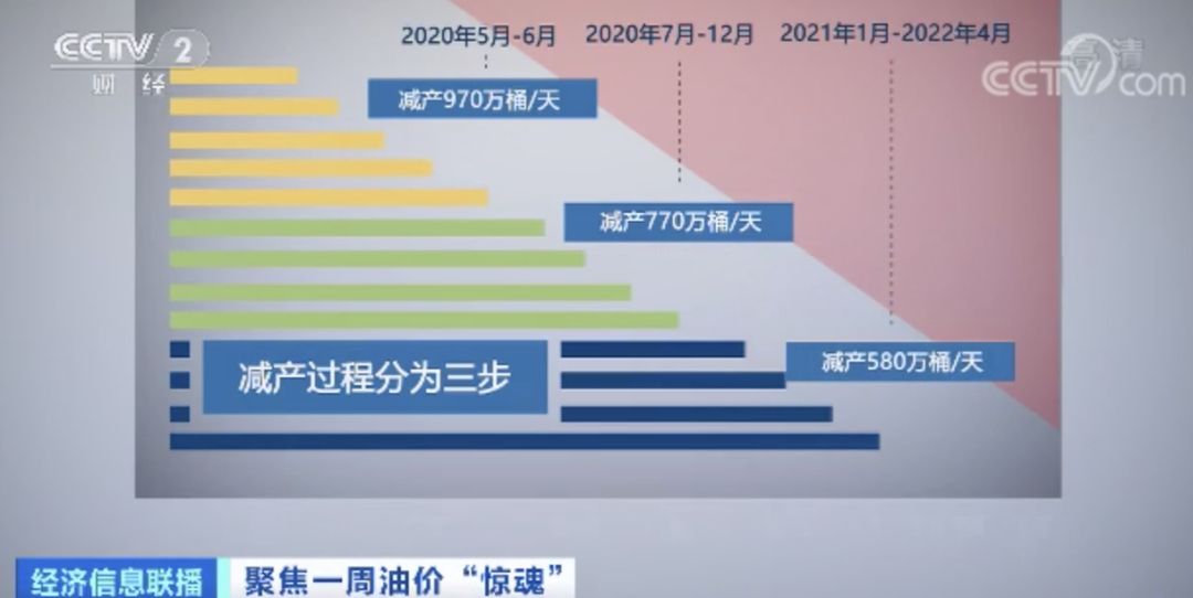 这场石油价格战持续了一个多月后,4月12日,石油输出国组织欧佩克宣布与非欧佩克产油国达成石油减产协议,将从5月1日起日均减产970万桶,首轮减产为期两个月。