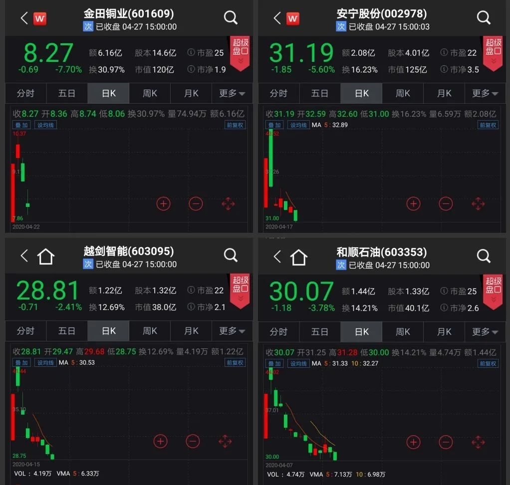 4月上市新股中,有4只新股在上市次日就打开了涨停板。且在开板之后,股价连连下跌,部分个股的区间跌幅已经超过20%。