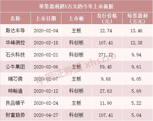 截至目前,今年的打新收益榜上,有8只新股单签盈利超过了5万元,包括4只主板新股和4只科创板新股。今年最赚钱的新股是斯达半导,单签盈利高达13.46万元。
