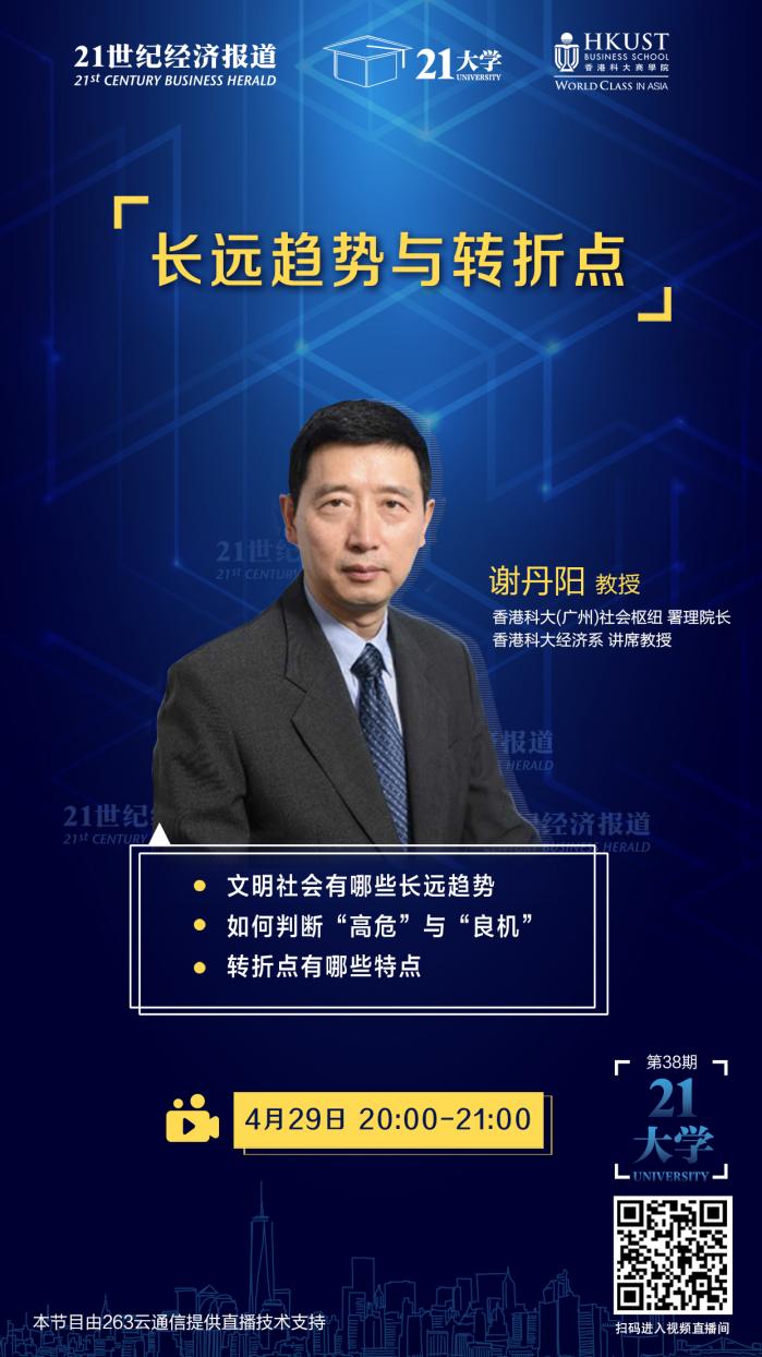 「21大学」是《21世纪经济报道》发起的读者线上交流平台,旨在给读者提供增值服务,以视频、音频同步直播的形式为读者们解读最新热点、提供最丰富的市场资讯,充分发挥《21世纪经济报道》作为现代化文化产业新引擎的作用,创造更高的商业文明。