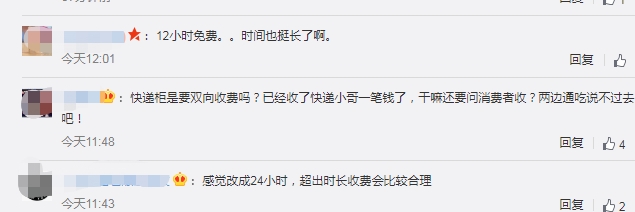 对此,有人表示,12小时保存时间太少,应该再长点。也有人认为,假如快递一直不取,占用资源,支持收费。