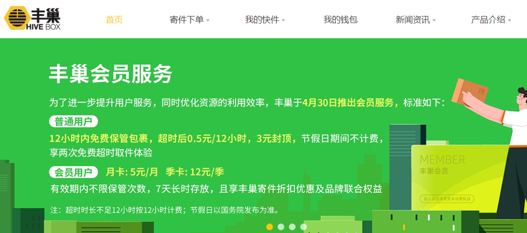 明天起,丰巢快递柜推会员服务:季卡12元可存放7天,非会员超时后最多收3元