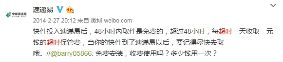 另一家快递柜品牌速递易曾表示,免费保管24个小时,超时以后每24小时1元(不足24小时按24小时算)。