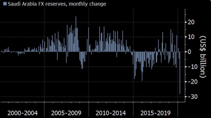 随着国际油价连创新低,过去“富得流油”的沙特阿拉伯也顶不住了。沙特央行外汇储备3月份暴跌270亿美元,创至少20年来最大降幅,显示了油价暴跌对该国公共财政造成的破坏严重。