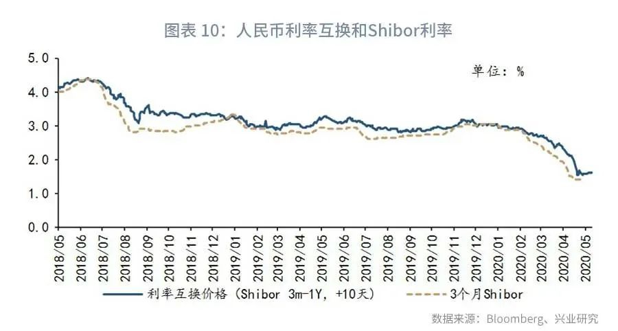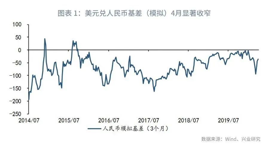 美元Libor利率为何反应迟缓?4月,美元兑人民币掉期在3月大跌后出现明显反弹。一方面,中美利差逆转3月走势开始走阔,人民银行在月初降准后停止进行逆回购操作,并且缩量续作MLF和TMLF,3M Shibor利率止住此前跌势,股份制银行NCD发行利率出现反弹;而在美联储连续加码宽松的情况下,美元Libor利率4月明显下行。另一方面,境内美元流动性冲击缓解,我们模拟计算的3个月美元兑人民币掉期价差在4月出现了明显的收敛。展望5月,我们可以从以上两个方面来分析掉期市场的走势。