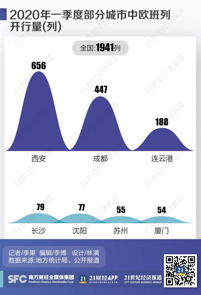来自西安海关的数据显示,2020年一季度,中欧班列(长安号)共开行656列,是去年同期的2.3倍。