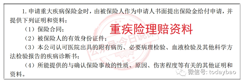 重疾险我们一般需要提供的材料,也就是被保人的身份证以及医院出具的病历、病理和血液检验,以及其他疾病诊断书。