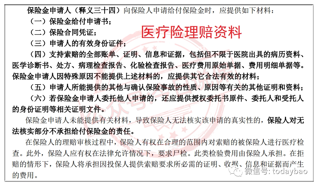 医疗险需要提供的材料就要复杂多了。除了要提供申请人的身份证以外,还需要提供能支持索赔的全部账单、证明、信息和证据,比如病历资料、诊断书、处方、病理检查报告、化验检查报告、出院小结、医疗费用原始单据、费用明细单据等。