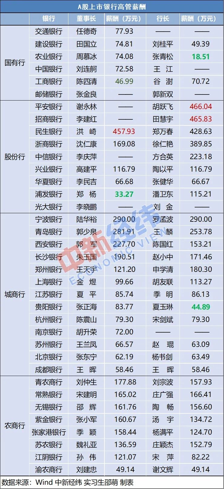 04、国有银行管理层薪酬低 平安银行行长年薪达466万