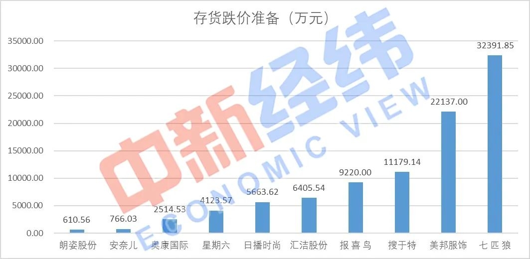 不过,对于存货减值准备的计提,也将影响到公司的业绩情况。据中新经纬不完全统计,在目前已公布2019年年报的服装上市公司中,就有10家服装上市公司计提了存货跌价准备,合计金额达9.5亿元。其中七匹狼、美邦服饰(美特斯邦威)、搜于特计提存货跌价准备金额位居前三,分别为3.24亿元、2.21亿元、1.12亿元。