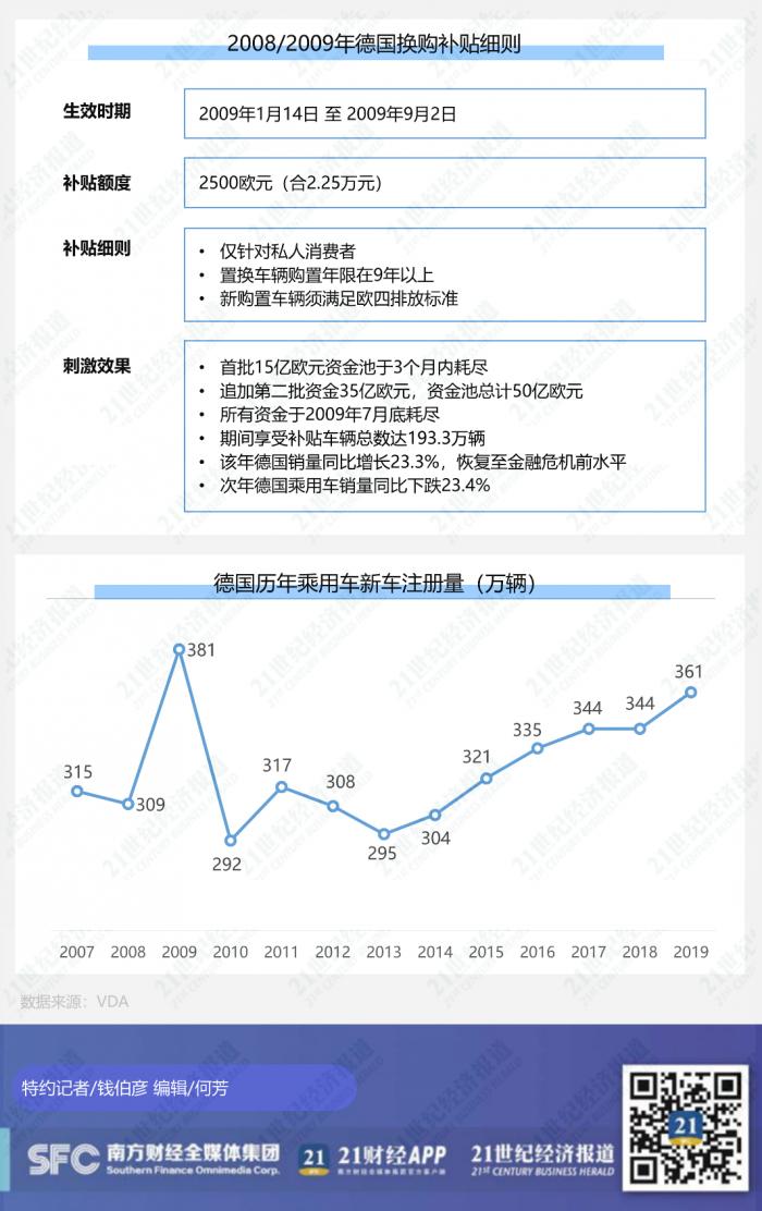 而财政实力最为雄厚的德国则宣布淘汰9年车龄以上旧车换新奖励2500欧元,在不到半年时间之内,德国的该补贴申请者就突破了120万人。彼时,德国2009年全年乘用车销量大幅增长了23.3%,比2008年增加了72万辆。全年销量中有193万辆乘用车获得了国家补贴。