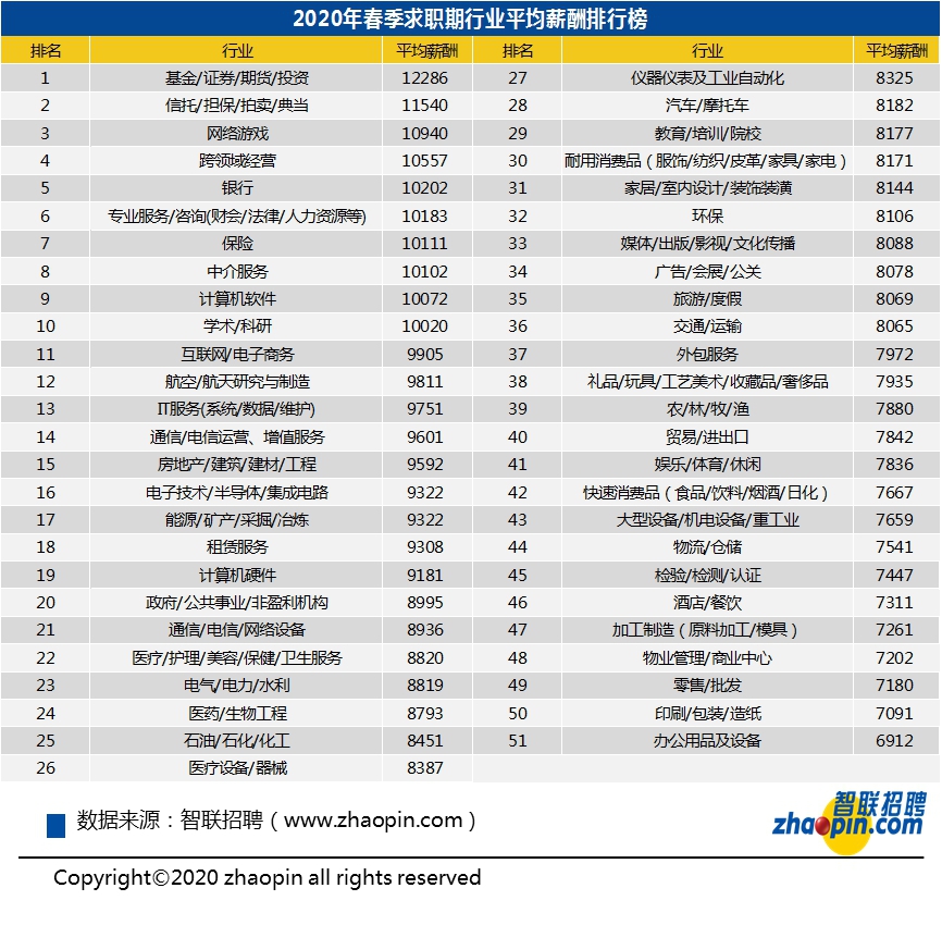 不过,2020年4月,智联招聘发布《2020年春季中国雇主需求与白领人才供给报告》显示,租赁服务业,综合业,采矿业,交通运输、仓储和邮政业和制造业5行业并未进入2020年春季求职期行业平均薪酬前10名。