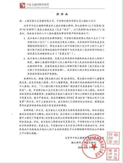 为此,池子质疑,中信银行上海虹口支行未获本人授权,便将其个人账户流水提供给笑果文化,属于侵犯公民个人信息的违法行为,目前自己已向公安局报案,且向银保监会等政府监管机关投诉,要求相关方进行赔偿并公开道歉。
