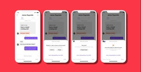 经过4周的开发,该软件在4月15日上线了最重要的新功能——应用内视频通话。Match集团首席执行官赫萨姆•侯赛尼(Hessam Hosseini)告诉《快公司》,他们已对地理位置的匹配功能进行了优化调整。在疫情之前,仅有6%的用户对视频通话功能感兴趣,因此该功能本不会被优先开发。但如今,由于缺乏其他约会选择,感兴趣的用户比例飙升至69%。