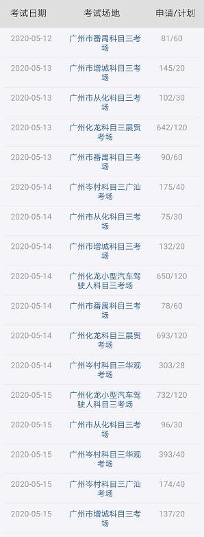 截至5月8日上午10时50分,广州部分申请驾考人数一览: