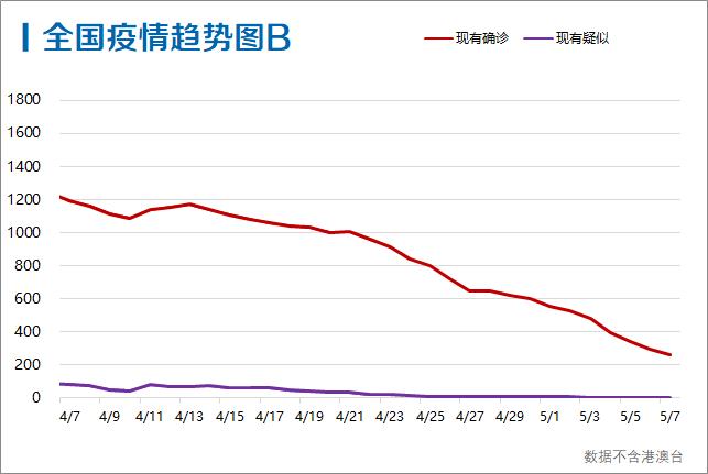 5月7日,全国(不含港澳台,下同)新增确诊病例1例,为本土病例(在吉林)。全国现有确诊病例260例,连续23天无新增死亡病例。