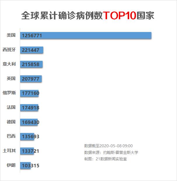海外网报道,据美国约翰斯·霍普金斯大学发布的实时统计数据显示,截至北京时间5月8日6时30分左右,全球累计确诊新冠肺炎病例3833957例,累计死亡268877例。