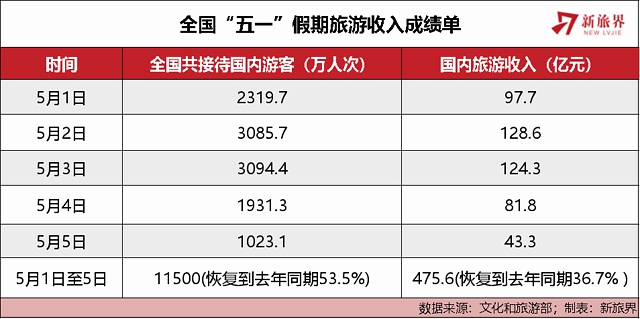 值得注意的是,这一数据超过部分研究者节前预测值(据文化和旅游部数据,5月1-5日,全国共接待国内游客1.15亿人次,实现国内旅游收入475.6亿元)。