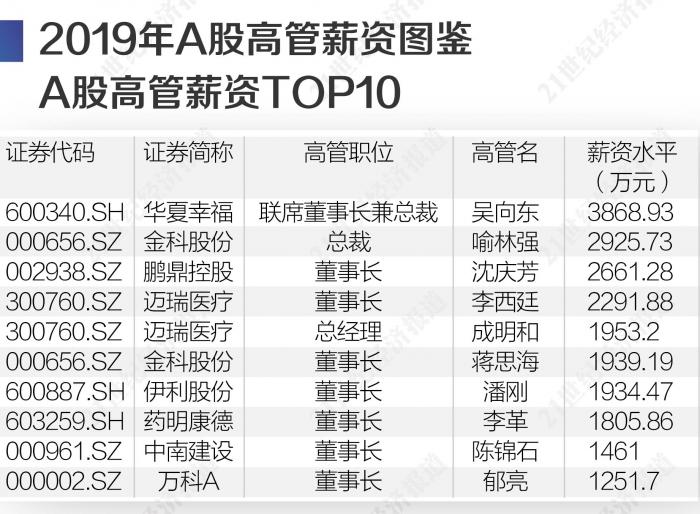 在2019年的薪资排名上,华夏幸福联席董事长吴向东以3868.93万元的高薪冠绝A股,而在上一年,“打工皇帝”的宝座还被方大特钢时任董事长谢飞鸣占据。