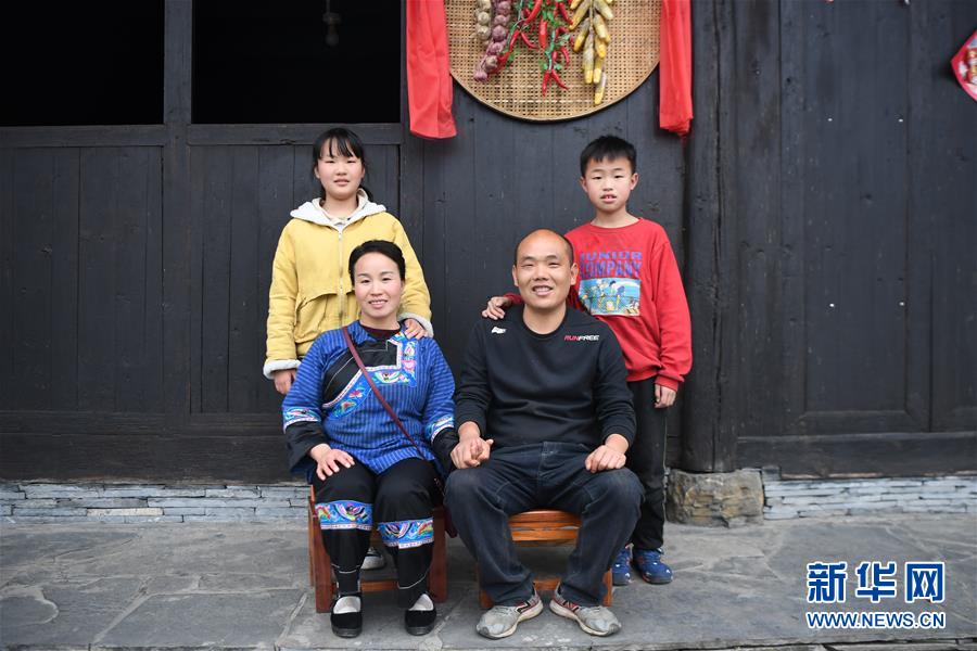 这是4月25日拍摄的杨正邦(前右)一家的合影。杨正邦1978年出生于十八洞村,在外打工多年。近些年,眼看来十八洞村的游客越来越多,村里越来越热闹,杨正邦在2017年结束自己的打工生涯回乡发展。他先是在村里摆起小吃摊,2018年开起农家乐,去年又搭起新房子扩建成民宿,年度家庭人均纯收入从2014年的1923元增加到2019年的7173元。新华社记者 薛宇舸 摄