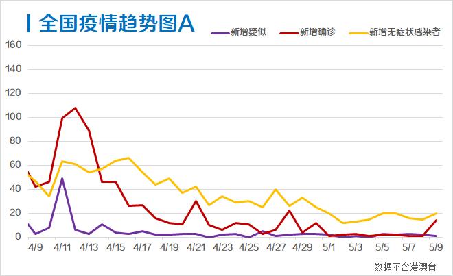 此外,港澳台地区均零新增确诊病例。5月9日,包含港澳台,全国有31个省区市零新增,17个省区市清零。