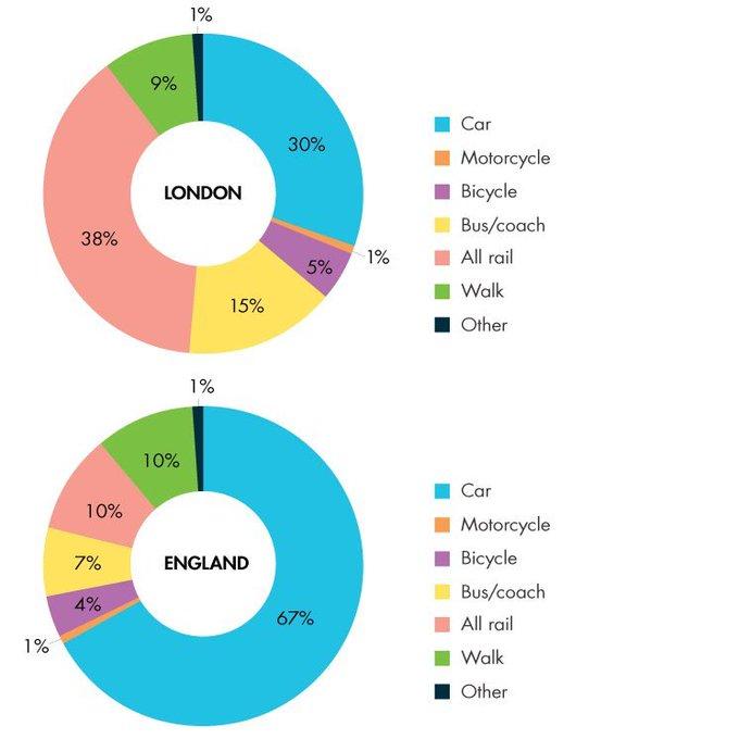 在伦敦,超过一半的人需要乘坐公共交通通勤。